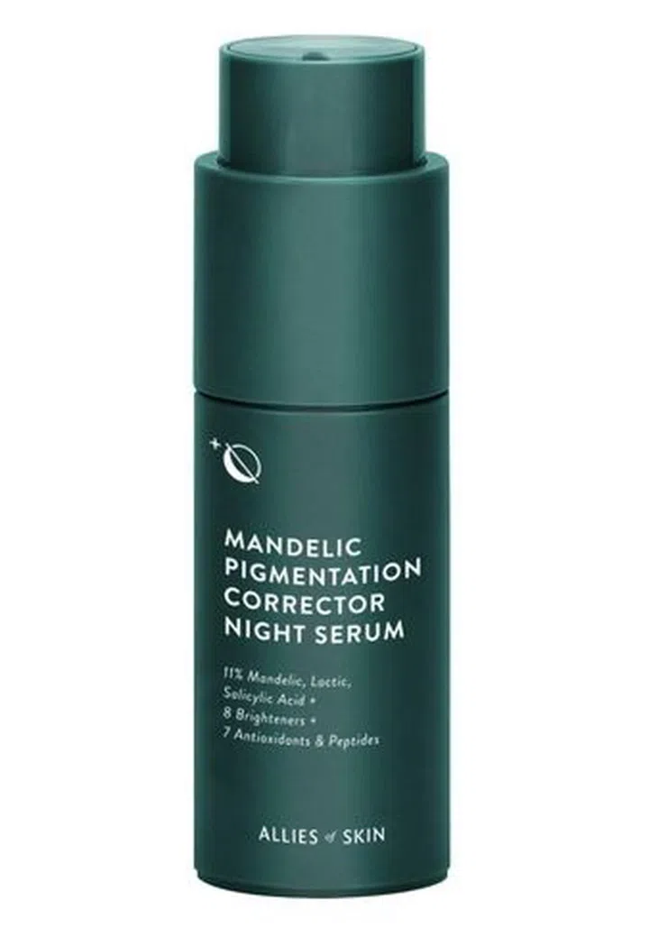 "One must-have product recently in my skincare routine is exfoliating serums with AHAs and BHAs like glycolic acid and salicylic acid, such as Allies of Skin's Mandelic Pigmentation Corrector Night Serum. I’m obsessed with how they work on my skin."