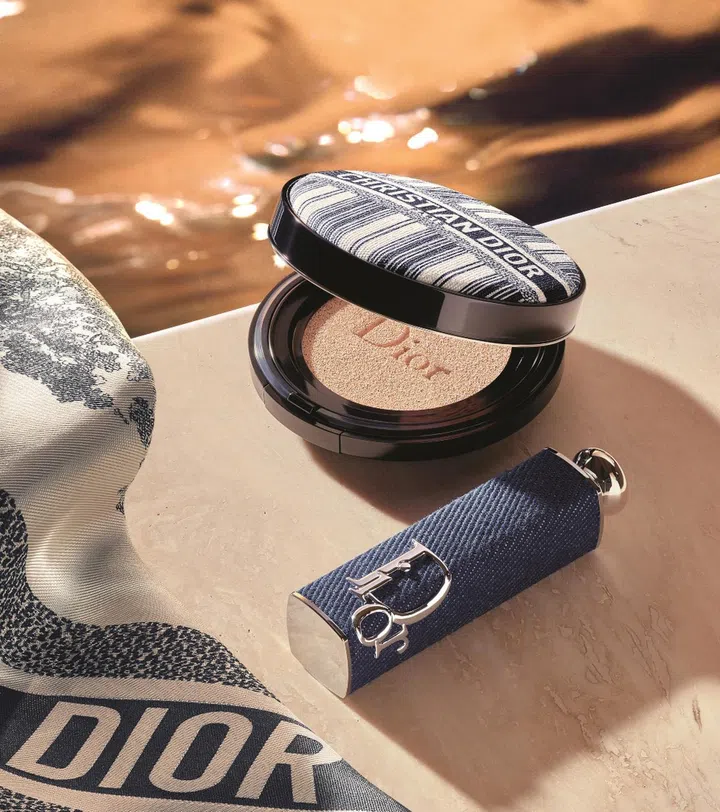 In need of that post-holiday glow? Peter Philips, the creative and image director for Dior Makeup, has created a new limited-edition makeup line for summer that imparts the sun-kissed beauty and carefree spirit of the French Riviera. Aptly named Dioriviera, the expansive seven-product line includes two 5 Couleurs Couture Dioriviera eyeshadow palettes ($110 each) that takes inspiration from the golden hour with its warm and champagne-like hues; 12 Dior Addict Lip Tints ($54 each) in shades of coral, taupe and deeper plum; two Rouge Dior Baumes ($58 each) in Coral and Bronze. Adding to the mix are two Dior Addict Lip Glow Oils ($54 each) in Bronze Glow and Peach Glow; two Dior Forever Couture Luminizers ($95 each) in radiant Pink Riviera and in sensual gold Nude Riviera; eight Dior Forever Couture Perfect Cushion Dioriviera foundations ($110 each, pictured) decorated with Dior's distinctive Bayadere pattern said to make complexions luminous or dewy respectively; and three Dior Vernis nail polishes ($43 each) that beautify the nails in peach, coral and gold shades and strengthens nail buds with enriching peony and pistachio extracts.