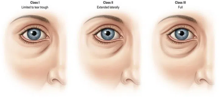 The under-eye area or tear troughs gradually deepen as the skin loses collagen over time. Source: Adv Dermatol Allergol 2016; XXXIII (4): 303–308