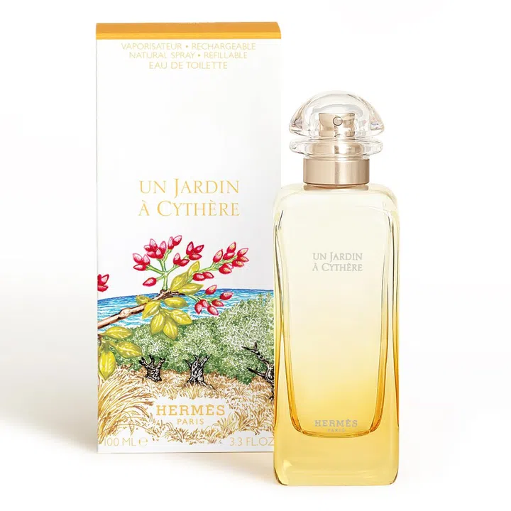 Accompanying the bottle is a special box illustrated by Greek artist Elias Kafouros, whose detailed compositions have inspired the designs of many Hermes scarves. Depicting the grass browned by the sun and caressed by the wind, the pink of the fresh pistachios and the green of the olive trees against the blue backdrop of the sea, the artist brings together all the key components of Un Jardin a Cythere ($110 for 30ml EDT; $160 for 50ml EDT; $228 for 100ml EDT; $326 for 200ml EDT refill).