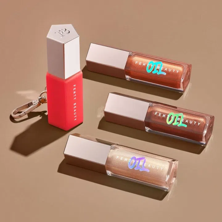 Here's a limited edition makeup collection to covet this summer: Fenty Beauty's new Bronze All Ova collection features shades, formulas, and accessories in warm, shimmering bronze hues designed to enhance cheeks, eyes, and lips. The Gloss Bomb Oil Luminizing Lip Oil ($39) hydrates with hyaluronic acid and conditions lips with shea butter and vitamin E, and it's now available in three new shades: $uperfine $uga (white gold), Fro$ted Bunz (amber gold), and Coppa Cookie (copper).