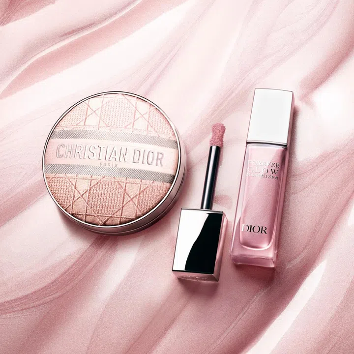 The Dior Forever Glow Maximiser ($78 each) and Dior Forever Skin Glow Tone-Up Embroidered Cannage Cases in Beige and Pink ($50 each) and Refills in Apricot Blossom and Rosy Lilac ($77 each) are now available at all Dior Beauty boutiques, counters and online store
