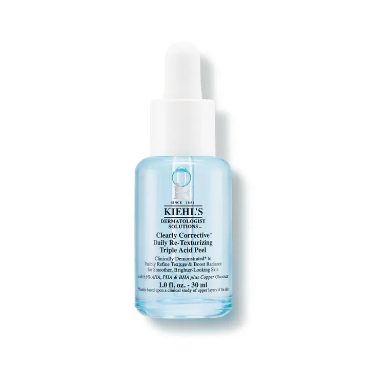 The Kiehl's Clearly Corrective Daily Re-Texturising Triple Acid Peel ($88 for 30ml) is now available at all Kiehl's boutiques and online store