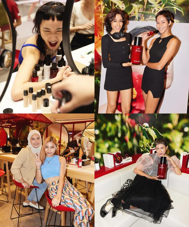 The two-hour session co-hosted by FEMALE and Chanel Beauty during the recent Nº1 De Chanel pop-up event at Suntec City saw faces from the homegrown fashion and creative scene in attendance. These include (clockwise from top left) Basic Models Management face Kaci Beh, models Saima Jha and Lisa Van Duren of Misc Management, freelance publicist Parveen Hassanbhai, and musician Khally (in blue) and her mum.