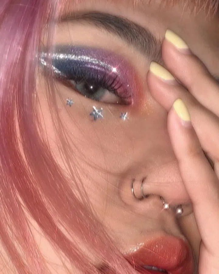 "One of the most memorable makeup looks I have done is the one with an orange-to-blue gradient and a metallic silver graphic liner with stars all over it (above). I was feeling bored in my room one night and decided to play with makeup for fun. I believe that was one of the first few times that I had actually experimented with makeup without any photo inspiration or mood board."