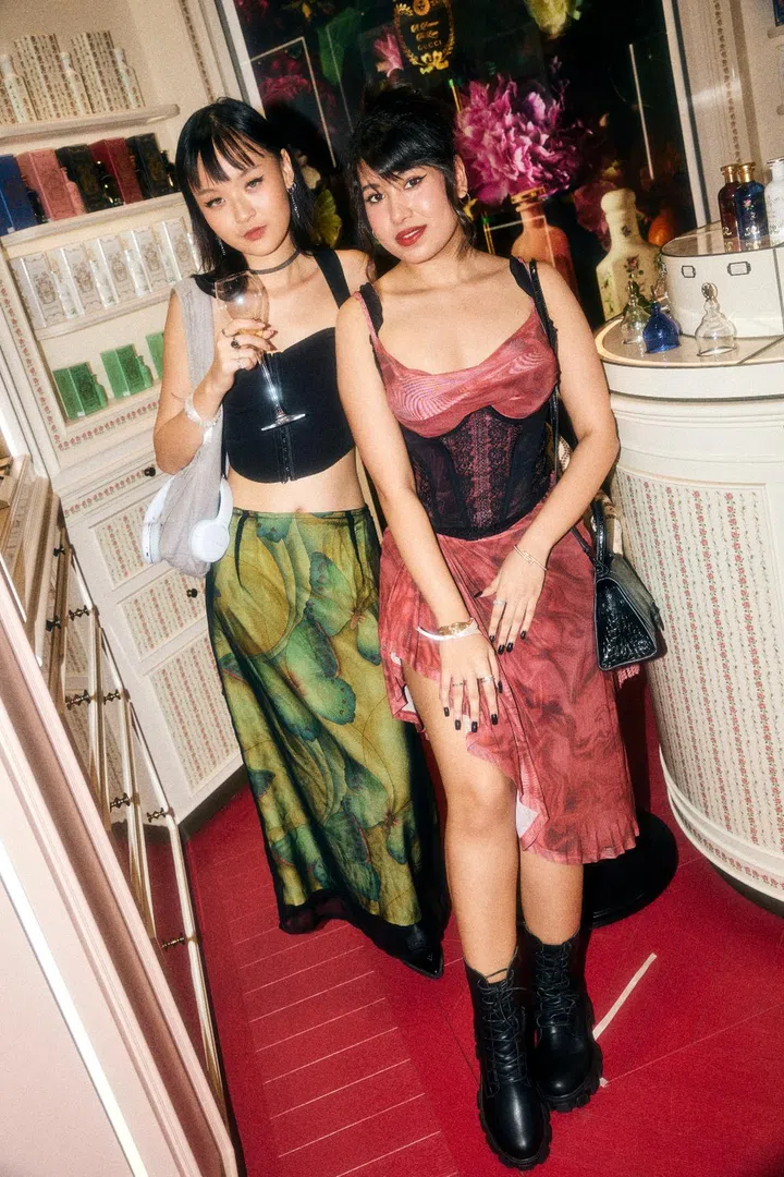 Graphic designer and content creator Kerni Chew (left) and pal Ramisa Tabassum striking a pose at the Alchemist Garden, a dedicated space for Gucci Beauty’s line of high-end perfumes and perfume oils.