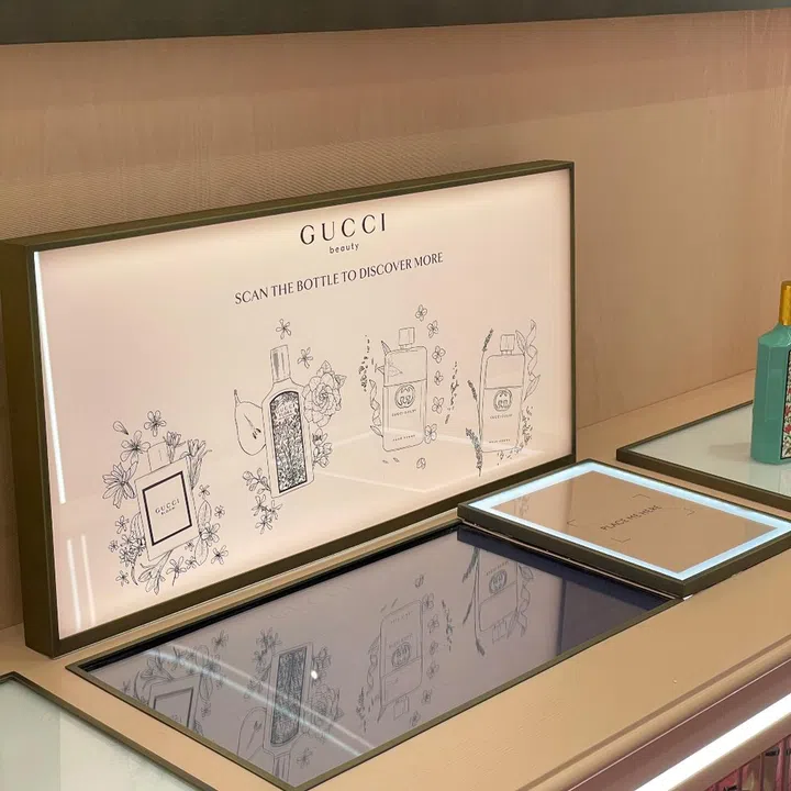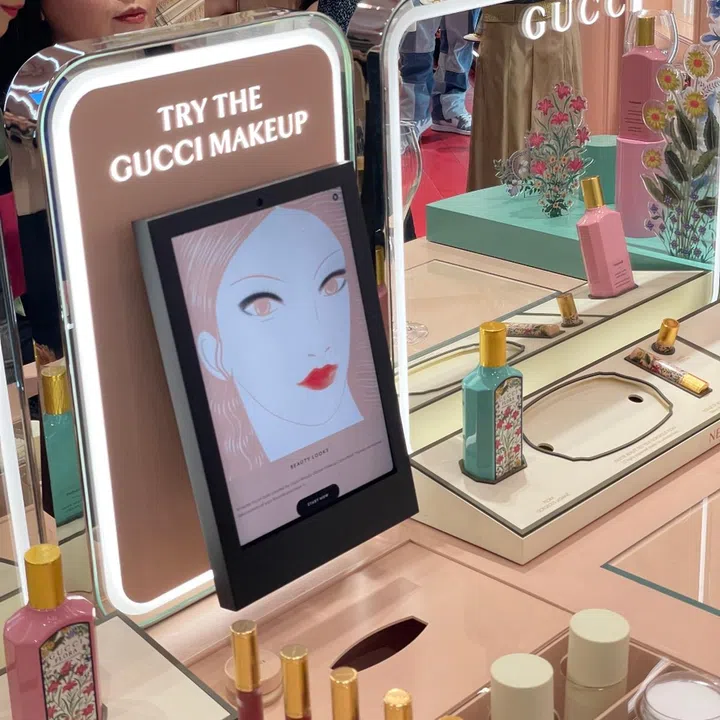 Perch yourself at one of the two vanity tables and experiment with different makeup looks with the interactive digital screens. To create an all-rounded shopping experience, the Gucci Beauty boutique also integrates touchpoints such as QR codes that you can scan to access one-of-a-kind Gucci games, apps, and e-boutique shopping features.