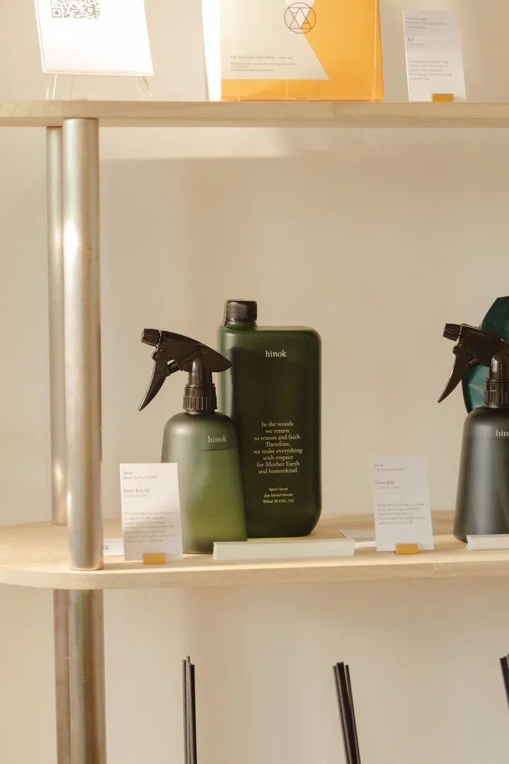 The space also carries lifestyle products from brands like Hinok which is behind the cypress scent that fills the shop. The brand uses 100 per cent hinoki cypress water extracted from three-decade-old Jeju cypress tress to formulate its Hinok The Spray (pictured).