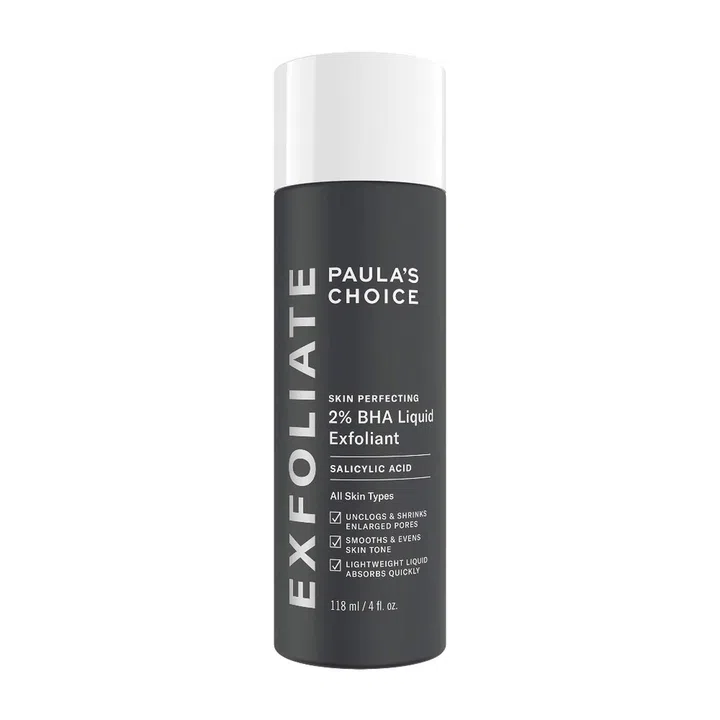 Salicylic acid is always recommended in this arena because of its ability to enter deep into our pores and dissolve the type of skin debris that clogs pores and causes acne – which is why it's an ingredient that tends to be popular with oily skin types. Our go-to is an evergreen staple: Paula's Choice Skin Perfecting 2% BHA Liquid Exfoliant, the product that first launched the brand to stardom in the '90s.