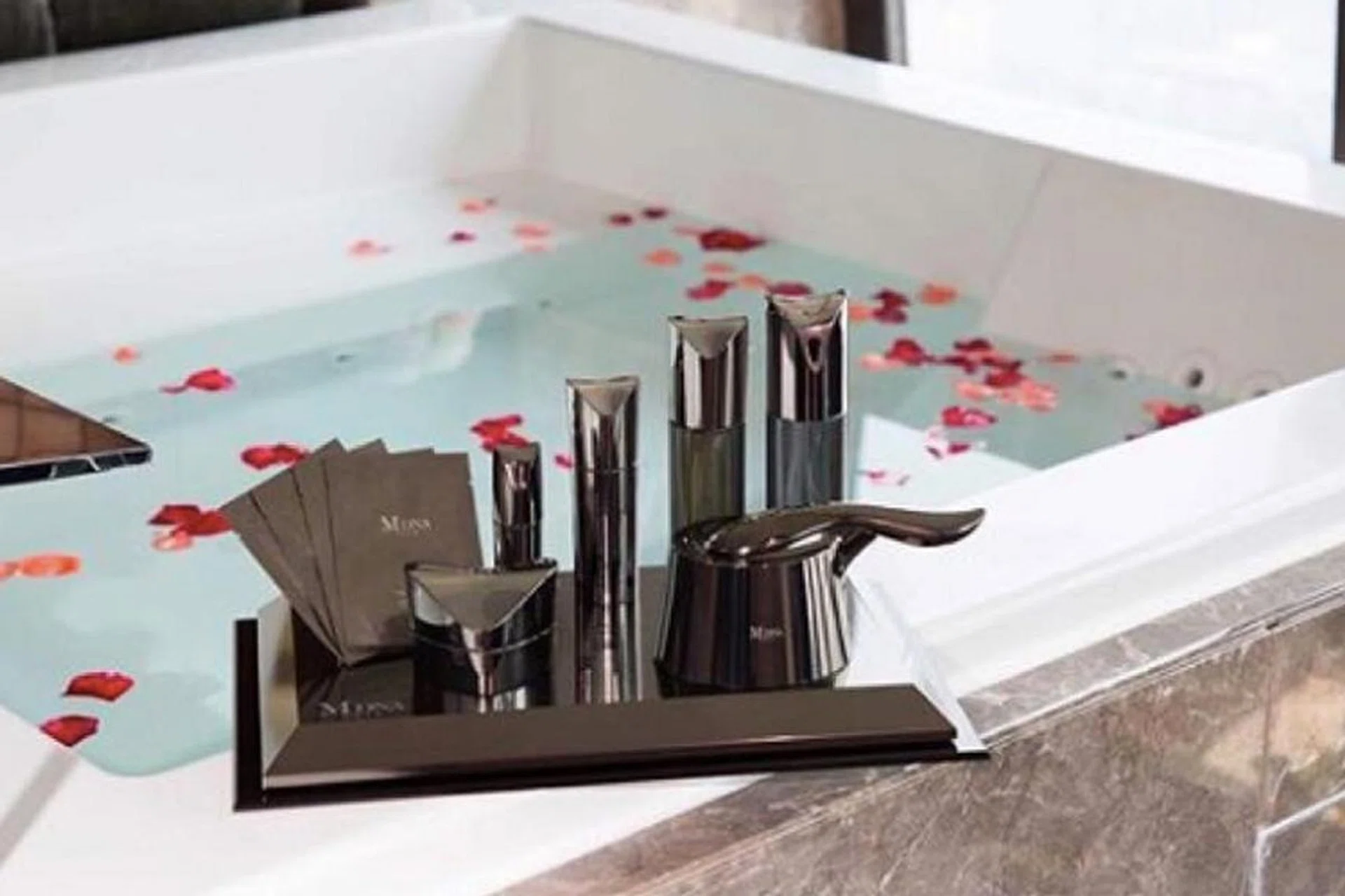 The MDNA Skin collection includes the Rejuvenator set with the Chrome Clay Mask, the Rose Mist, The Serum, and the Onyx Black, a black carbon roller that emits far infrared rays. The products are priced between $70 and $940.