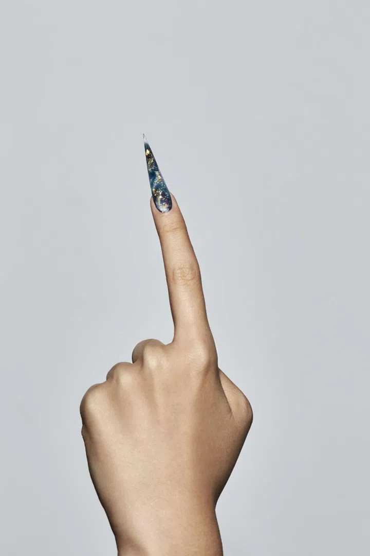 Tipping things firmly towards the outre, Han believes in the longer, the better, so her extensions are always at least 2cm beyond that of one’s natural nails, then fashioned into trendy, graphic, often talon-like shapes (her latest obsession is the extremely pinched “Russian Almond”). So dedicated is she to her aesthetic – one that she categorises as “American/Pinterest acrylic nails” – that she turns down customers who approach her year-old business seeking the typical, often girly girl nail art favoured by Asian women.