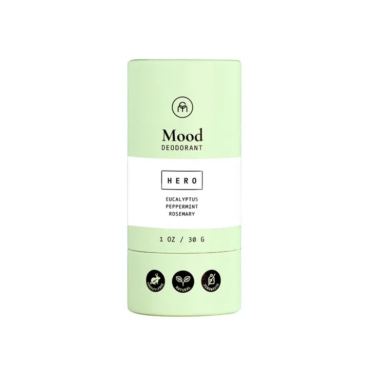The Mood Natural Deodorants come in five scents that include: Spring for a floral burst of freshness with geranium, lavender and lime; Bliss for a zesty citrus blend of lemongrass, lime and frankincense; Zen for the warm and woody soothing relief of cedarwood, bergamot and vetiver; Hero for a refreshing mix of peppermint, eucalyptus, and rosemary; and Coconut for an essential oil-free, coconutty aroma that’s suitable for the most sensitive of skin types.