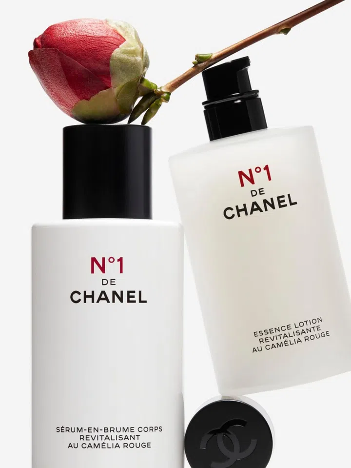 Two new babies have just joined the Nº1 De Chanel skincare family – say hi to the Revitalising Body Serum-in-Mist (left) and Revitalising Essence Lotion.