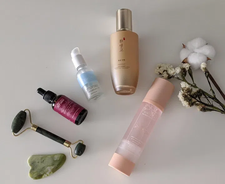 How to recreate that spa experience at home: “I use my acne care serum and regular gua sha as well to promote blood circulation. I finish off my routine with my favourite moisturiser from Yehwadam.”