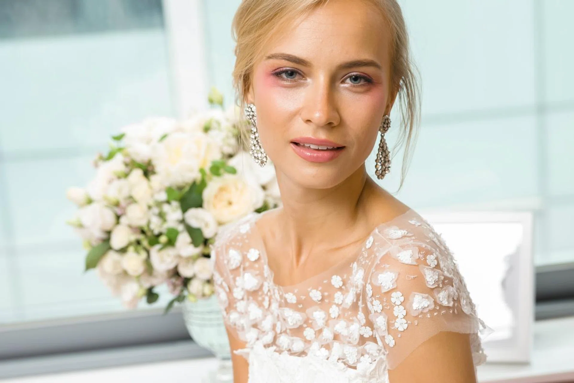 When we heard that this wide-neck lace beaded dress with a taffeta skirt is a best seller overseas, we weren't surprised. Why do we love it? The illusion neckline, with its delicate petal and beaded embellishments, is the prettiest detail ever! And princess brides will love the rich taffeta skirt that billows out beautifully, creating a full train.