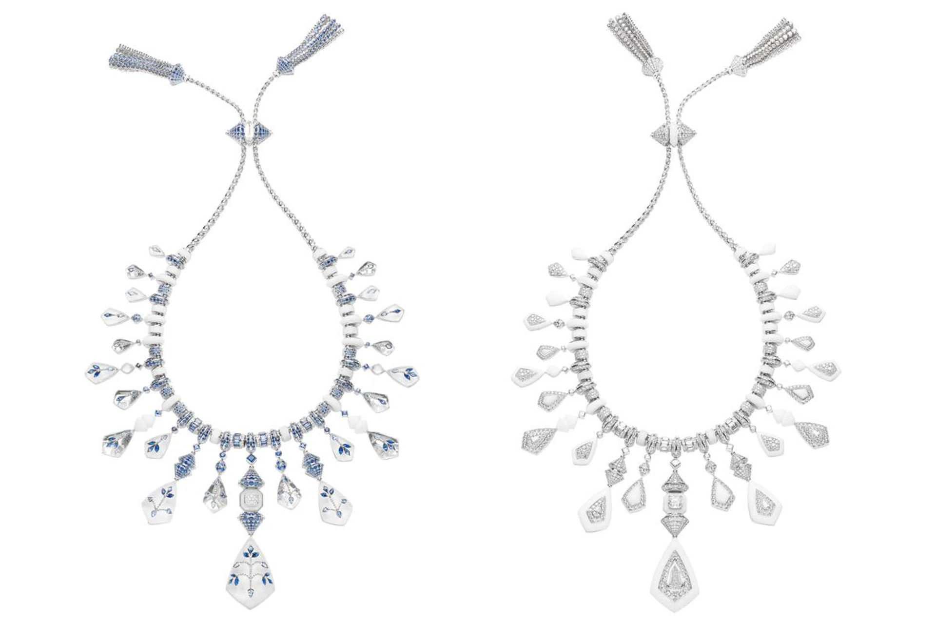 Jodhpur is reminiscent of the blue facades of the houses and the dazzling light that bathes the city, and presents the first reversible High Jewelry necklace as a tribute to traditional Indian jewellery.