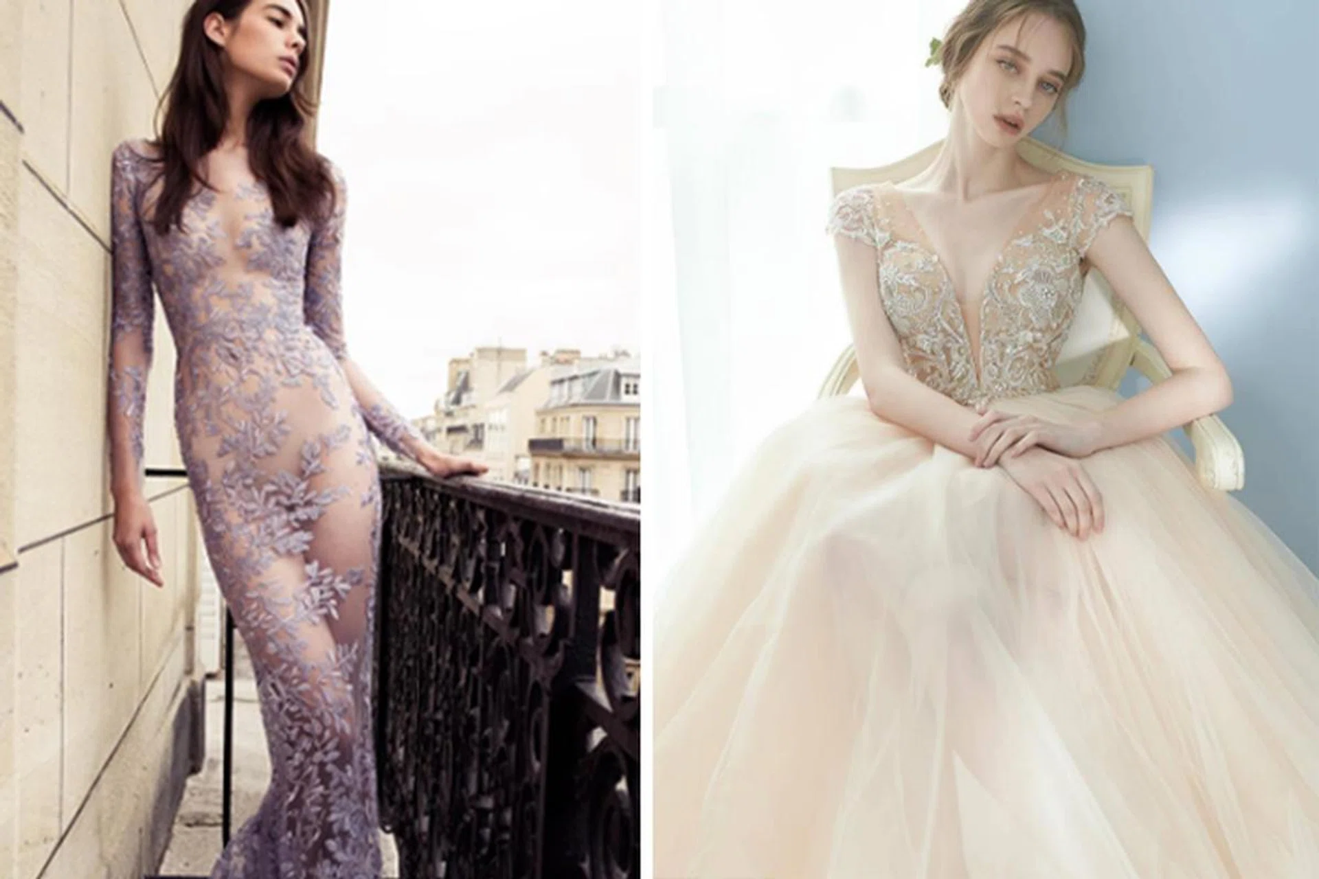 TRENDING: Sheer, Romantic Wedding Dresses In Dreamy Pastel & Nude Colours