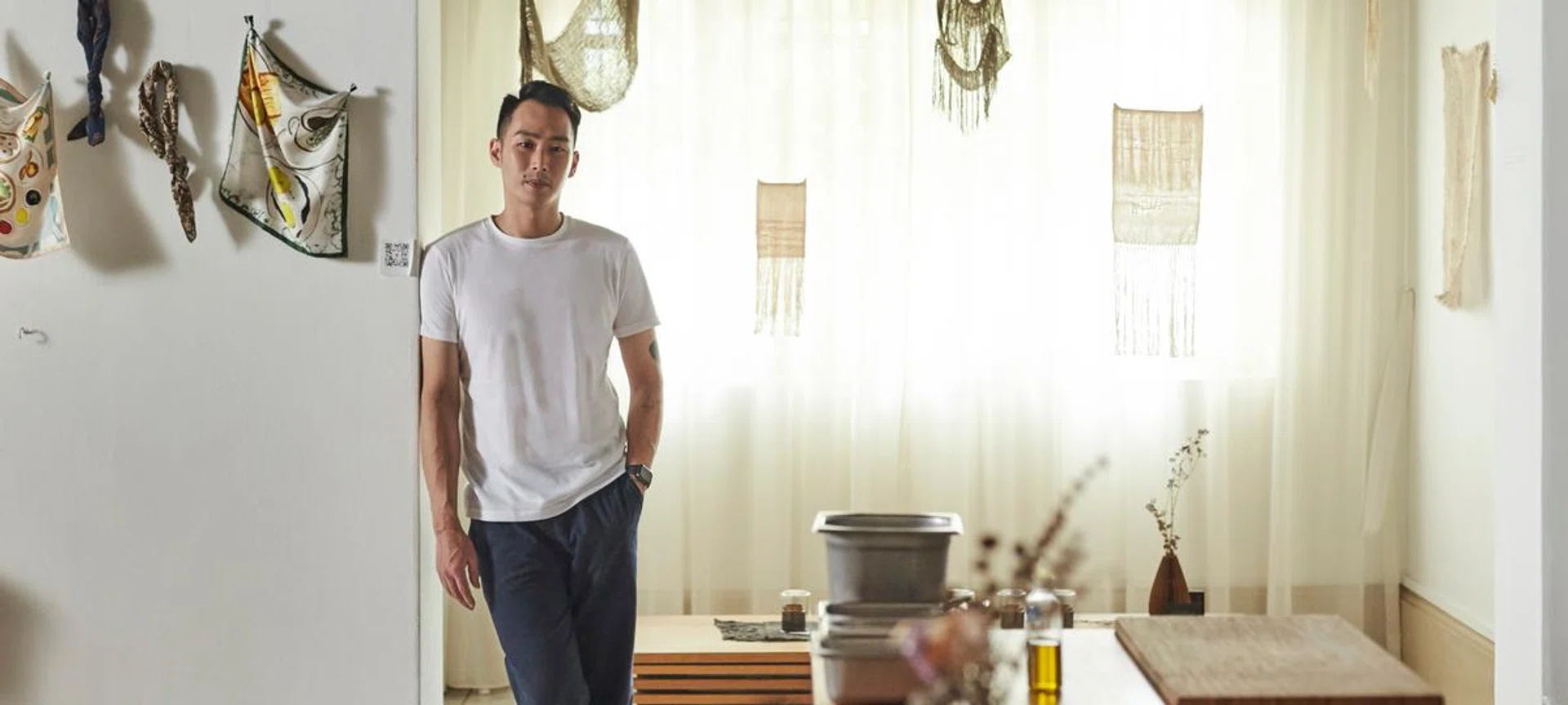 At Alter Native – the recently opened private dining-slash-exhibition experience by chef Desmond Shen – the worlds of food, art and crafts are intertwined beyond the decorative. Taking place in a terrace house on McNair Road that the 29-year-old calls home, it’s his first in-person project under his own name and roof (he’s previously hosted pop-ups in restaurants).