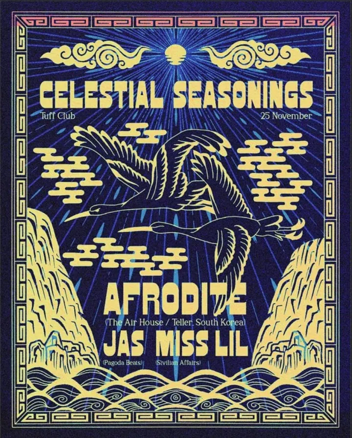 Although it was just launched this year, Sivilian Affairs’ party series Celestial Seasonings has already provided some very memorable nights built on cosmic house and spaced-out minimal techno. This month, its party will be headlined by none other than South Korean sensation Afrodite. Known for her dreamy and groovy rhythms, few can command a dance floor as fluidly as she can. Don’t believe us? Check out her YouTube channel Afro Therapy to see how she mixes her organic, curative tunes. She’ll be accompanied by Sivilian Affairs’ own Miss Lil and Pagoda Beats’ Jas.