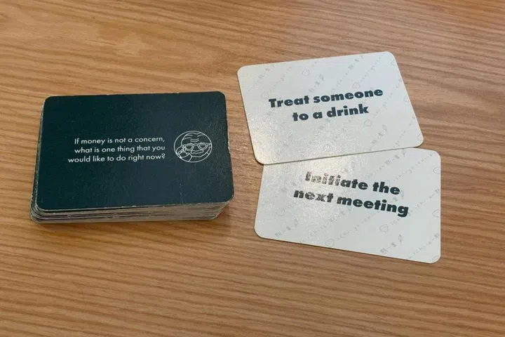 The cafe allows customers to borrow ichi-go ichi-e (‘once-in-a-lifetime’ in Japanese) conversation cards that have topics and questions on them, which patrons can ask fellow patrons in order to spark a conversation.