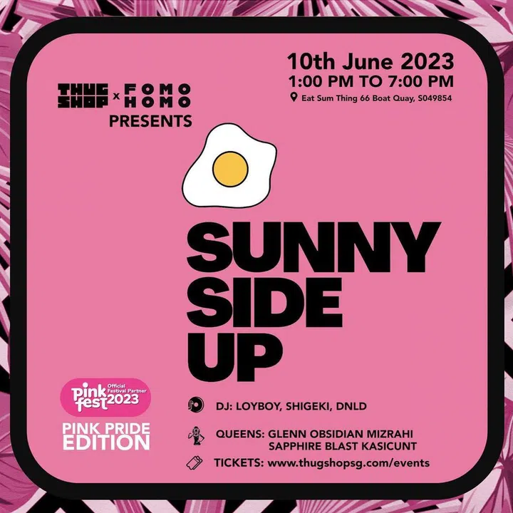 If you love brunch, booze and beats, look no further than this party co-organised by FomoHomo and music and gastronomy event organiser Thugshop. Happening within riverside restaurant Eat Sum Thing in Boat Quay, feast your soul with scrumptious food and groovy beats one of queer event organiser FomoHomo’s most unique formats so far – this time, in celebration of Pride Month. Dig into a scrumptious brunch menu crafted by former Les Amis chef Brandon Lee while you enjoy the energetic sets by FomoHomo’s music curators Loyboy, Shigeki and DNLD alongside drag acts by Glenn Obsidian Mizrahi and Sapphire Blast. A weekend brunch like no other indeed.