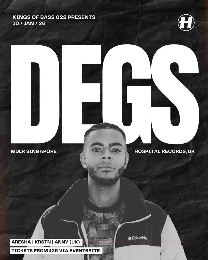 The masterminds behind Kings of Bass are kicking off 2026 in a big way. Degs, the drum n’ bass MC and singer, is making his way for a late-night session with back-to-back bangers. It’s not often you’ll get to see someone adept at both the DJ decks and the mic, but Degs is not your average party starter, being an eminent member of the Hospital Records roster and a selector of the fiercest tuneage.