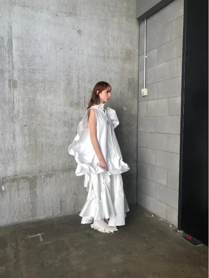 Yeo’s submission last December for Central Saint Martins’ annual White Show (where first-year BA students create a look out of white fabric) was inspired by the relationship between bordello (Spanish for brothel) girls and their clients, through the lens of Venus and the Virgin Mary.