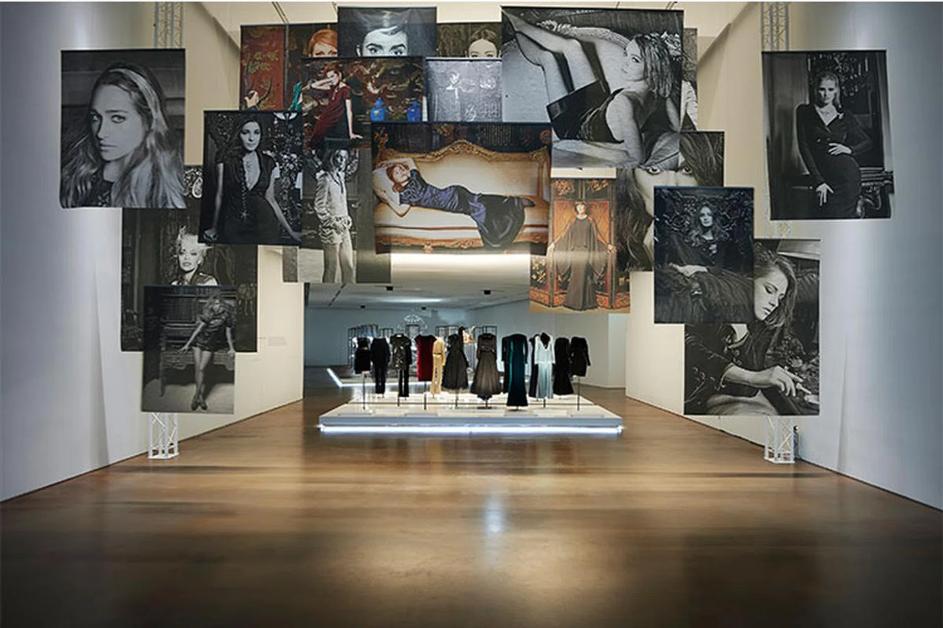 No filters needed here. That's because the glass door, windows and floor of the entrance of the museum are swathed in a holographic material to futuristic effect. It's a trippy prelude to the exhibition which begins at the bottom of the stairway. The ceiling meanwhile, is a lightbox draped in patterns inspired by the lacquered Coromandel screens which Coco Chanel collected throughout her private apartment.