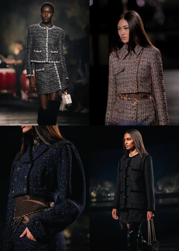 Youthful tweed skirt suits and an unexpected embroidered bodysuit featuring the coromandel pattern at the Chanel 2024/25 Metier d’Art show in Hangzhou