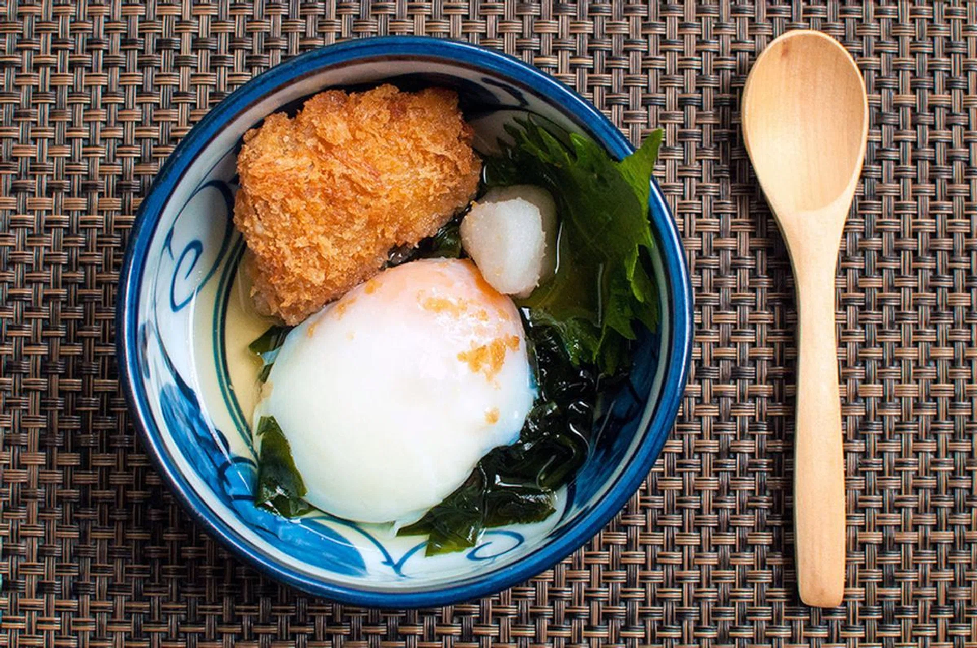 Another fuss-free but tasty dish: the onsen egg (below, $16), cooked for 20 minutes at a constant temperature of 63 deg C (the temperature of the water of hot springs – also called onsens – in Japan). Served with a chunk of fried beef bone marrow that melts in the mouth.