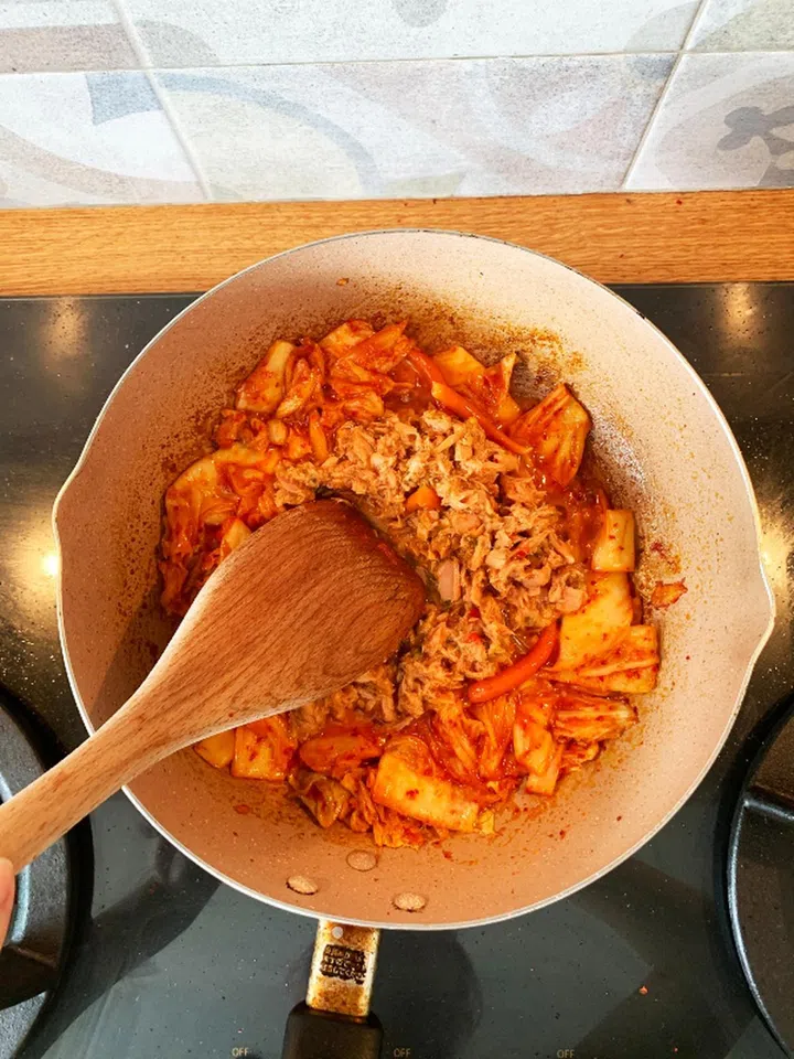 "I love this dish because it's easy to prepare and it's a balanced meal on its own. You have your protein (tuna), veggie (kimchi) and carbohydrates. I timed it, and you only need 10 minutes to make this dish. As I'm staying alone during this period, I tend to overbuy just a wee bit while grocery shopping. So I've learnt to be more creative and efficient in my meal planning and recipes so that I utilise my ingredients before they go bad."