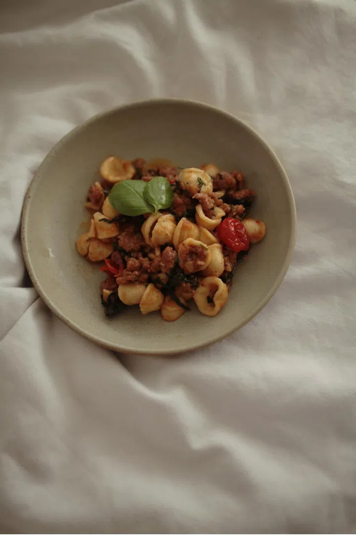 "After having several kinds of pasta with sausages, I developed this recipe for orecchiette on my own. Orecchiette is a pasta typical of Apulia, the southern region of Italy. It comes from the Italian word orecchia, meaning 'ear', and -etta, meaning ‘small’ as the pasta shape resembles a small ear. Here is one of my favourite ways to eat these little ear-shaped pasta. This recipe is so simple to make and just so good. I would pay money to eat it at a restaurant because that's how much I love it."