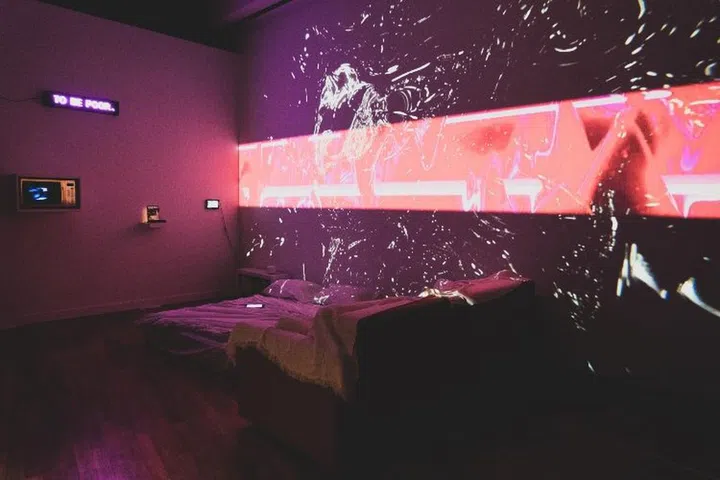 We’re Good is a mixed media installation that served as Lim’s commentary on mass consumerism. Utilising found furniture and household appliances (including a microwave that’s older than Lim herself) and “decades of furniture commercials”, it comments on the social and environmental repercussions of a society overtly conditioned to throwing things away – all outfitted in her favourite shade of purple.