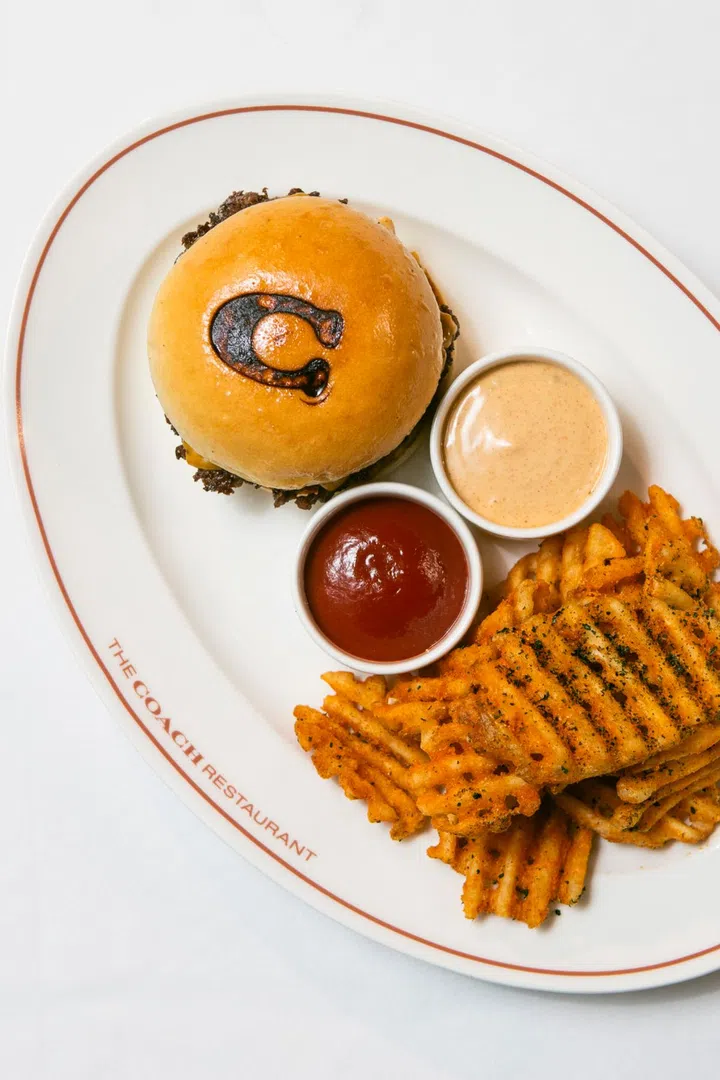 "C" monogram-stamped brioche buns are served with your burgers at The Coach Restaurant.