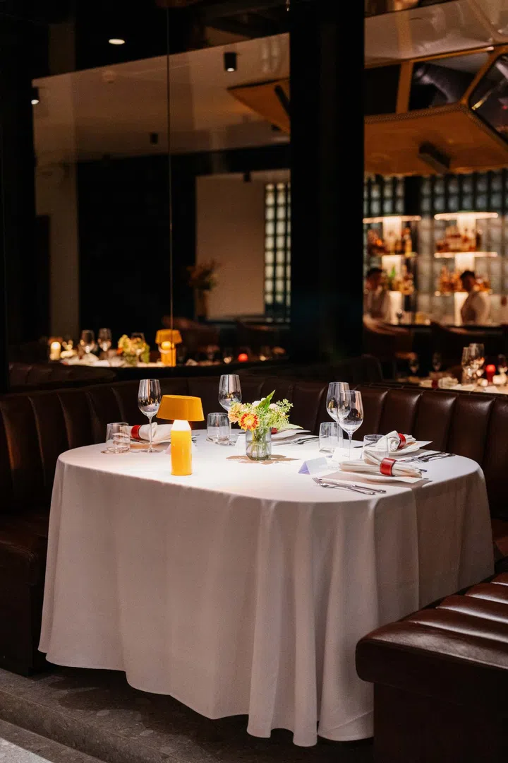 Drawing inspiration from the iconic visual language of New York, The Coach Restaurant spans 22,000 sq ft and reimagines a classic New York steakhouse with nostalgia in mind. Think low lighting, warm tones, and brown leather seats. Even details like menu covers, placemats, napkin cuffs, and the service staff’s aprons are crafted from leather, while plates feature floral detailing inspired by Coach collections.