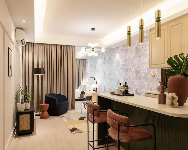 Step into AMI Suites, and you’re transported to a bygone era. The French-retro facade, adorned with geometric patterns and wrought-iron balconies, hints at the timeless glamour within. Inside, Art Deco flourishes dance across the lobby, from the mosaic floor to the sleek chandeliers.