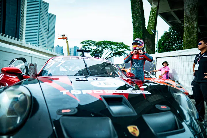 Earlier this month, the Singaporean racer made his debut in the 2025 Porsche Carrera Cup Asia – finishing P6 and P8 during the Formula 1 Singapore Grand Prix weekend. All this while serving his National Service duties.