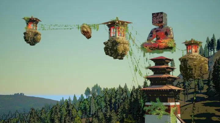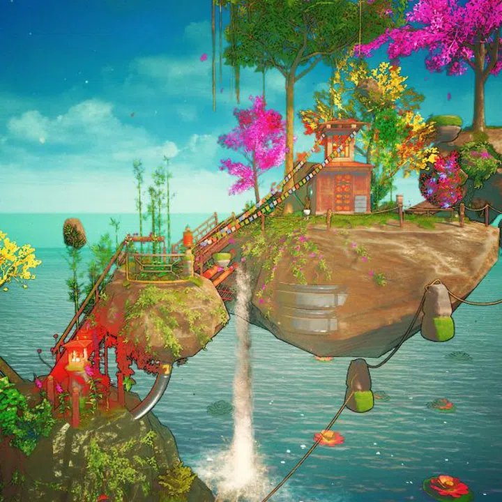 That said, he’s adept at pretty things too – he snagged top prize at the 2018 Sino x Niio Illumination Art Prize for his dreamy animation of a shrine on an idyllic island replete with floating rocks and sakura trees.