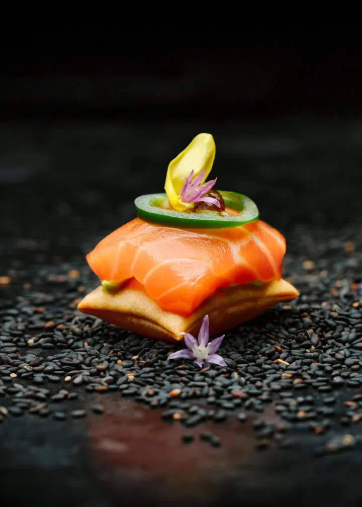Koma's Salmon Pillow (above) – an avocado-filled puff pastry crowned with fresh salmon sashimi – is sure to be a crowd-pleaser.