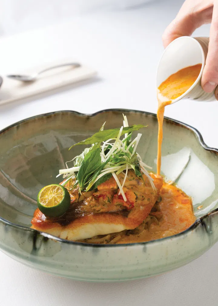 The vibe: Imagine leaving Singapore behind and arriving at a country estate in the hills of California – except you get a view of the famous MBS infinity pool and Gardens by the Bay. The restaurant’s interior design takes cues from a classic colonial-style bungalow, complete with high ceilings, whitewashed beams, and that inimitable relaxed So-Cal atmosphere. With two distinct spaces – a refined fine dining restaurant and a laid-back terrace lounge – you can choose your preferred dining vibe. Plus, open kitchens in both sections transform a meal into culinary theatre, adding to the lively, immersive experience.