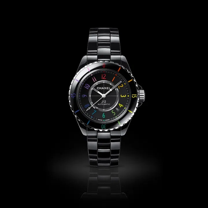 Among them: an all-black J12 Calibre 12.1, which is fitted with Chanel’s exclusive self-winding movement, with the indexes on the dial and bezel in a gradient of 12 different colours, and limited to 1,255 pieces worldwide. How’s that for an electric feel?