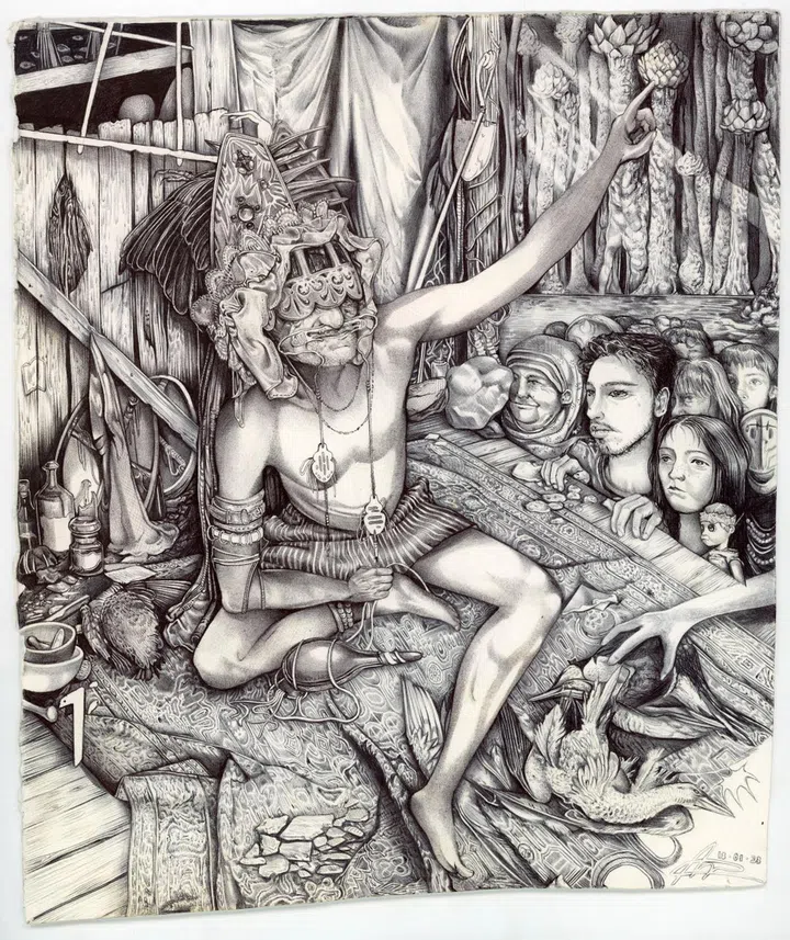 This striking 21-year-old, a student in the final year of the Bachelor of Fine Arts Course at Ruskin School of Art in Oxford, has quietly amassed a small but fervent following on Instagram for her hyper intricate, surrealistic ballpoint pen drawings that depict anything from iconic manga heroines like Evangelion's Rei Ayanami to chimaeric human-animal hybrids that look as if they might have just sprung out of a Hans Christian Andersen tale (in their original unfiltered version).