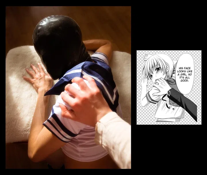 I also like considering the interconnections between people, things, histories and experiences in the artwork, using them as part of its internal dynamic and lore. Like in meme #2 (pictured), where there is drama being played out between the ominous hand and the hooded person, the negated face and the 'girly' face from the BL (boys' love) manga, the reconstructed image and the manga reference. I don't know what exactly should one interpret when seeing these relations but I like putting them together and I really get a laugh out of it."