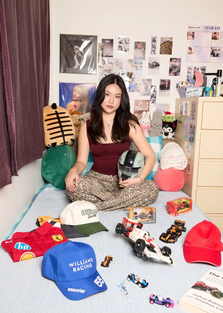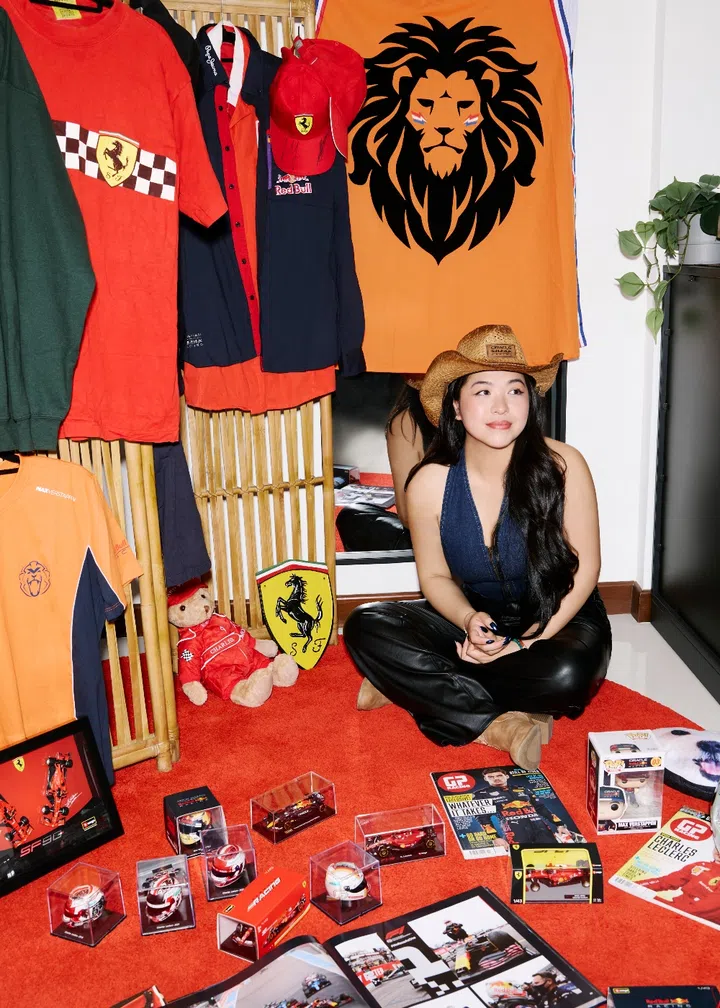 Dazale Choy has lived and breathed Formula 1 since she was 12, when Sebastian Vettel first caught her eye at the Singapore Grand Prix. Pictured here surrounded by years’ worth of personal F1 collectibles, vintage team shirts and carefully hunted memorabilia, the communications adviser and e‑commerce entrepreneur now channels this lifelong passion into The Slipstream Apparel, her own label specialising in F1 fanwear.