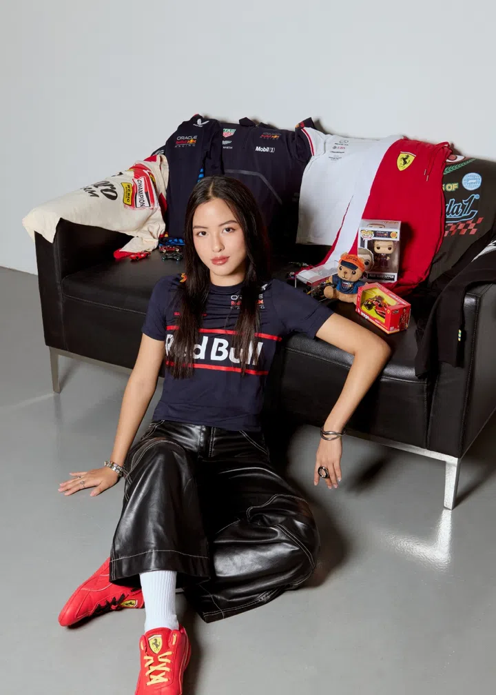WHEN SHE FIRST GOT INTO FORMULA 1: “My dad used to get free F1 tickets from his company back when the Singapore Grand Prix wasn’t too popular. He always said it was just really loud, the cars went by too fast to see, and the food was overpriced – so for years, I never had much interest, apart from whenever I heard Lewis Hamilton mentioned on the radio. That changed in 2023, when I was interning at a small crypto company planning a yacht party during the Singapore Grand Prix. As the marketing intern, I’d be onboard filming content and looking after guests, so I decided to study up when I realised that many of the companies attending were team sponsors. I taught myself how races work: pit stops, tyre compounds and more. I realised it’s so much more than driving in circles. It’s strategy, teamwork, skill, and engineering all rolled into one. Just for fun, I decided to pick a team and driver to support. I went with Ferrari – because who doesn’t love Ferrari? – and Carlos Sainz, mainly because Charles (Leclerc) was too popular and I didn’t want to look basic. Then Carlos became the only non‑Red Bull driver to win a race in 2023, and in Singapore no less. I took that as a sign that I was meant to be an F1 fan.”