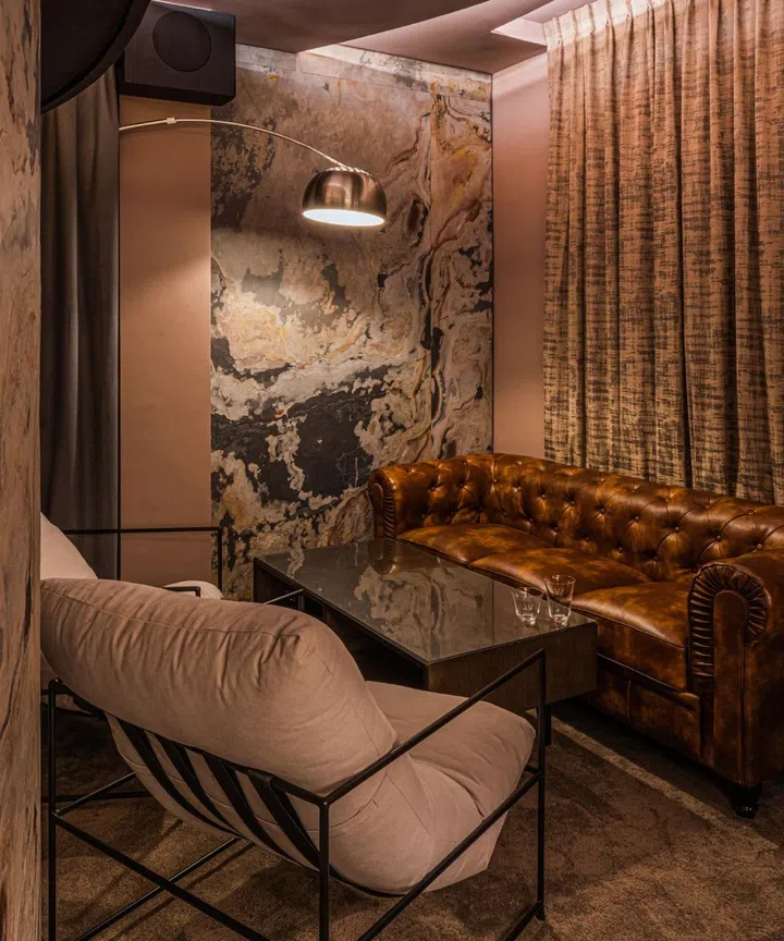 The lowdown: Lofty Peaks is a luxurious Indian-influenced cocktail bar located within the Little India food arcade, Apolo's Food Village. The bar offers uniquely presented drinks, featuring a glamorous decor with gold and glass accents, along with furniture adorned in royal blue and teal hues. The menu boasts creative Indian-inspired cocktails, such as "Take Me To Chennai," served in a globe-shaped glass, and the "Mumbai Honeycomb Mule," which is delicately spritzed with Indian Spice perfume.