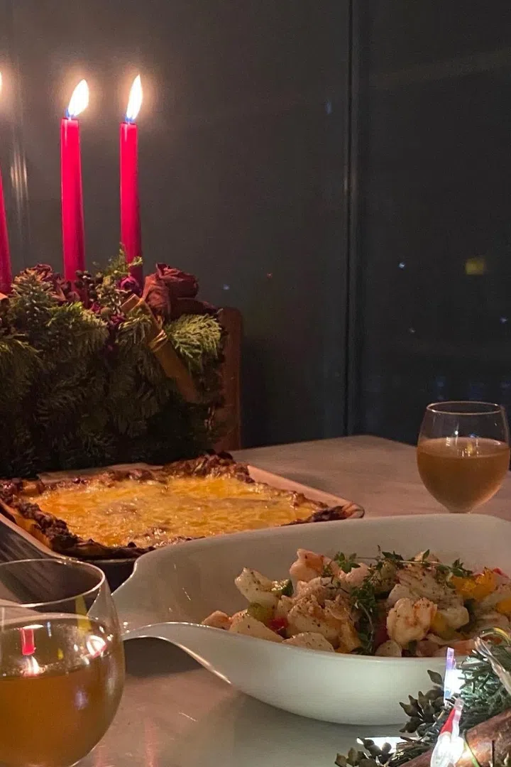 “I love home-cooked dinners. I eat out pretty often, so these come few and far between. There’s just something about making up recipes and sharing a meal that holds much love. I think I fill myself up with company more than anything else.”