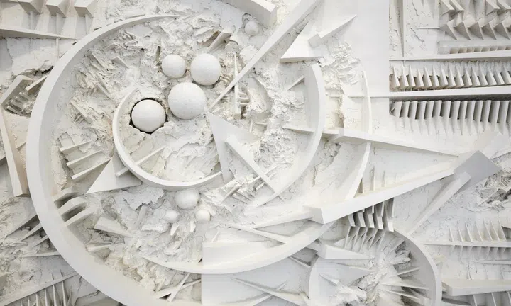 Indeed, for Pomodoro, sculpture is a way to understand the world and the signs, forms and materials of its civilisations real or imagined, explaining how his creations appear elemental yet futuristic and cannot be pigeonholed into any one specific artistic movement. Above is Movimento in Piena Aria e nel Profondo (1996-1997), or Movement in the Open Air and in the Depths, which is anchored by two curves and features reliefs influenced by Renaissance, Impressionism and Post-Impressionism, Cubism and Surrealism. The grand idea behind it: the ability to quantum-bend time and space.