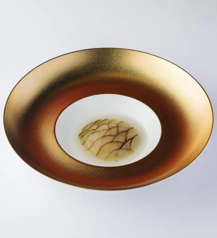 Highly attuned to the seasons, chef Shigeru Koizumi’s kappo-style Michelin-starred restaurant brings to attention the fruits of Japanese autumns – chestnut, persimmon and nashi pear. Persimmon is paired with myoga or Japanese ginger in a foie gras monaka, in line with his childhood-inspired and nostalgia-driven cuisine. While the nashi and chestnut both appear as post-meal sweeteners as a pear candy with vanilla milk foam and souffle respectively.