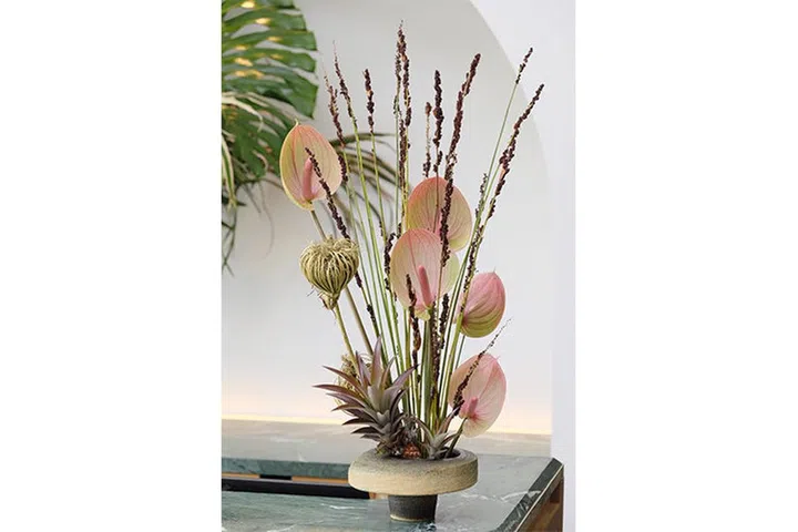 Visualise a floral bouquet that looks like a cross between an ikebana design and a graphic Jose Davila sculpture, featuring exotic blooms like the draping Amaranthus or claw-like Fire Lillies. This elan towards working with flowers in a modern and more artistic manner echoes the approach in floristry that has flourished abroad of late.